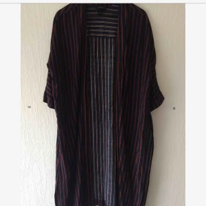 Oanvänd kimono från Monki. Blå/röd-randig med slits på båda sidorna och armbågs-längd på ärmarna. Kan mötas upp i Malmö, annars tillkommer fraktkostnad!