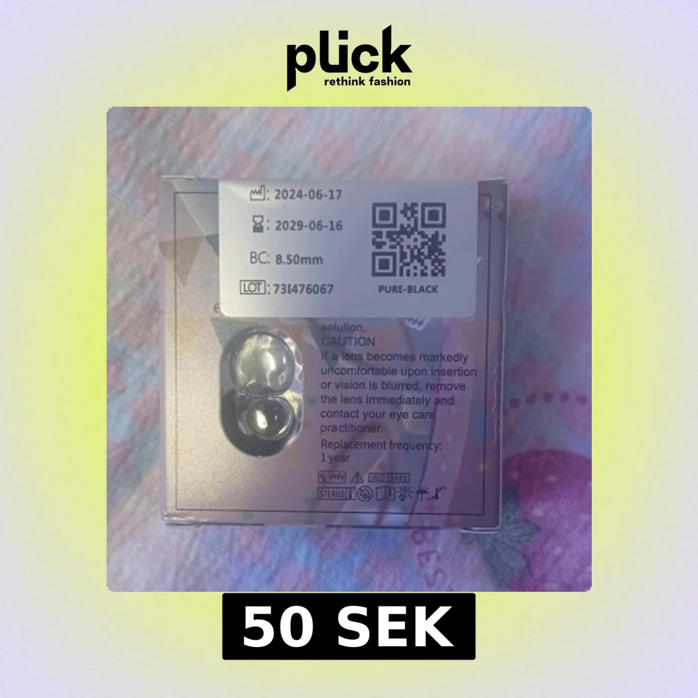 Ett par svarta linser jag köpte förra året för en cosplay som jag aldrig gjorde och har aldrig använt dom( dom är fortfarande i förpackningen dom kom i) man kan ha dom i ett år efter man har tagit ut dom. tills 2029 om man inte har öppnat dom
