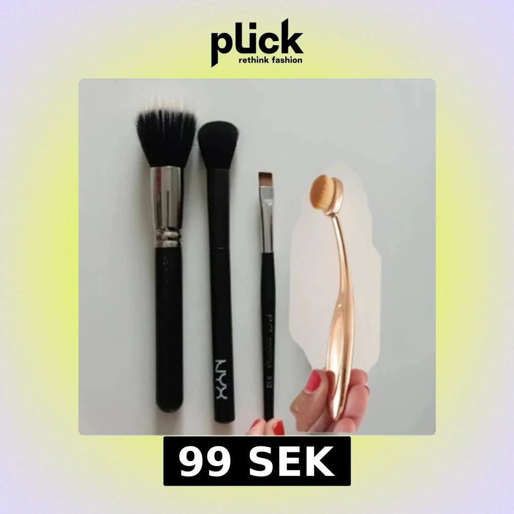 Säljer fyra sminkborstar: foundation borste från MAC 90kr, en precisionsborste från FACE STOCKHOLM 40kr för skugga, eyeliner eller ögonbryn, och en mindre rundad borste för rouge, bronzer eller highlighter frpn NYX i nyskick 50kr. 🌟 Köp enstaka eller alla för ett paketpris för 99kr