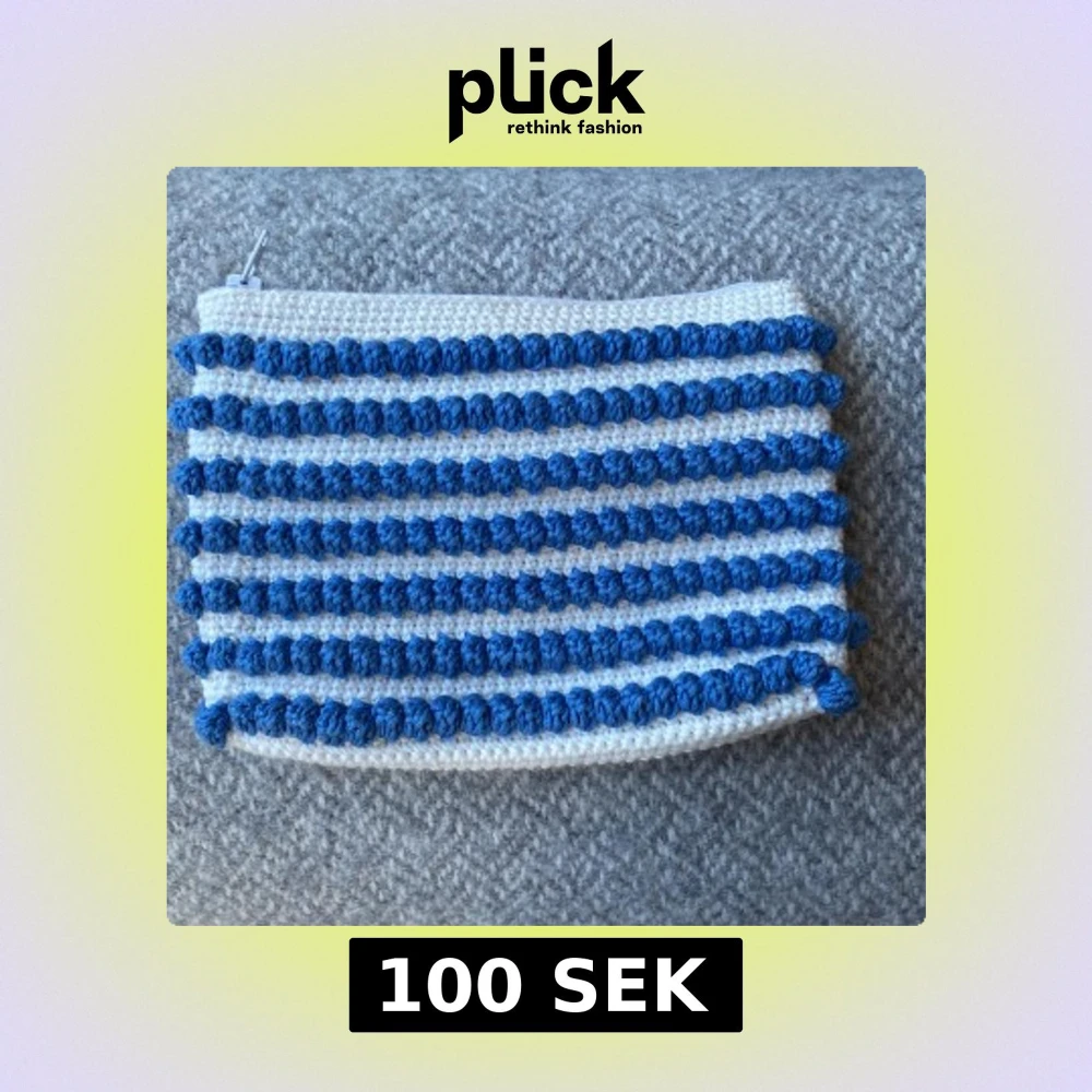 Superfin hemmagjord necessär med blå och vita ränder och bubblig struktur. Väskan har dragkedja upptill och är fodrad på insidan. Perfekt för småprylar eller smink. Höjd: 12, bredd: 17. Du står för frakten, vid mer info skriv