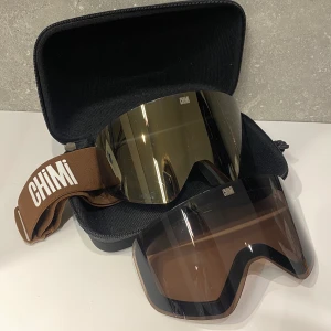 säljer mina chimi skidglasögon i färgen coco!! det ingår även ett solskydd🫶 superfina och väldigt moderna! använt dom under en säsong och det finns en liten repa i hörnet men inget stort. frakt ingår inte✨