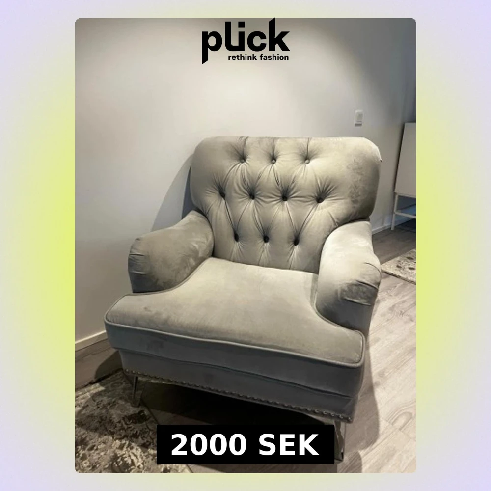 Säljer en stilren och bekväm fåtölj i mjuk grå sammet. Fåtöljen har ett klassiskt, tidlöst utseende med dekorativa knappar i ryggstödet och nitar framtill som ger en exklusiv känsla. Stadiga ben i krom/metall ger både stabilitet och modern design. Fåtöljen är bekväm att sitta i och passar perfekt i vardagsrum, sovrum eller som accentfåtölj. Använd men i mycket fint skick, inga skador – endast normala märken i sammeten som uppstår vid användning. Vid snabb afär kan vi diskutera om priset