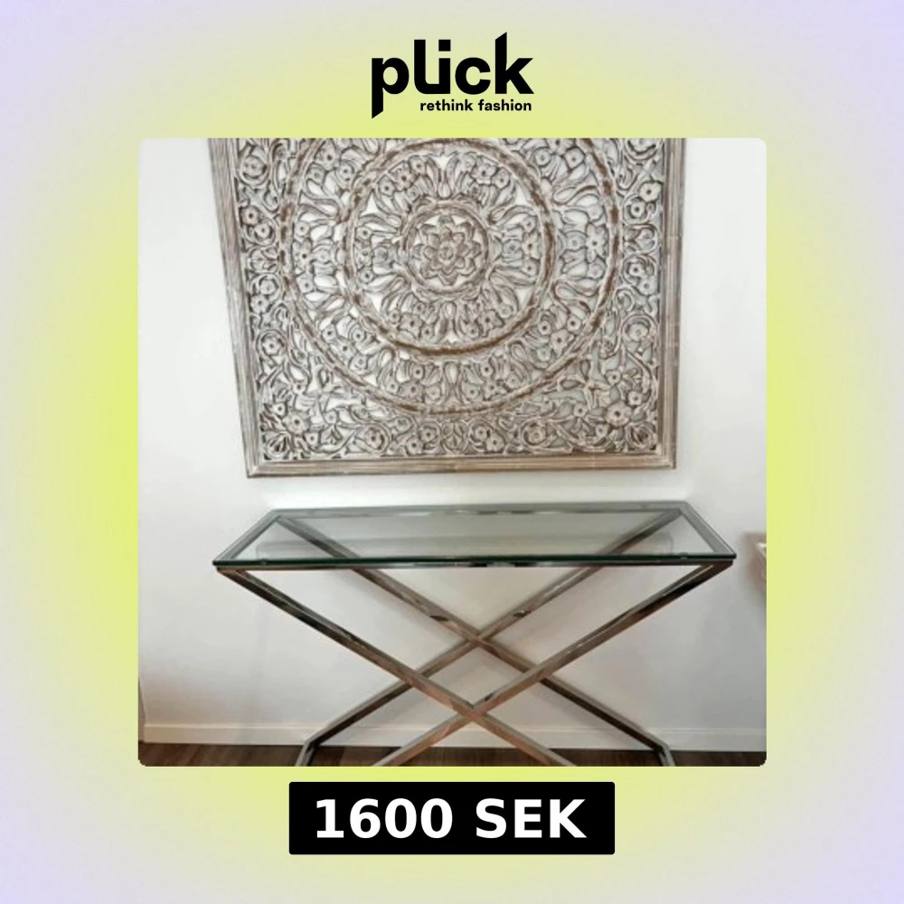 Soffbord (2300kr)+ konsolbord (1600kr) Silver/klarglas, rostfritt stål/härdat glas Soffbord: Bredd: 70 cm Längd: 130 cm Höjd: 50 cm Konsol Bredd: 120 cm Djup: 40 cm Höjd: 80 cm