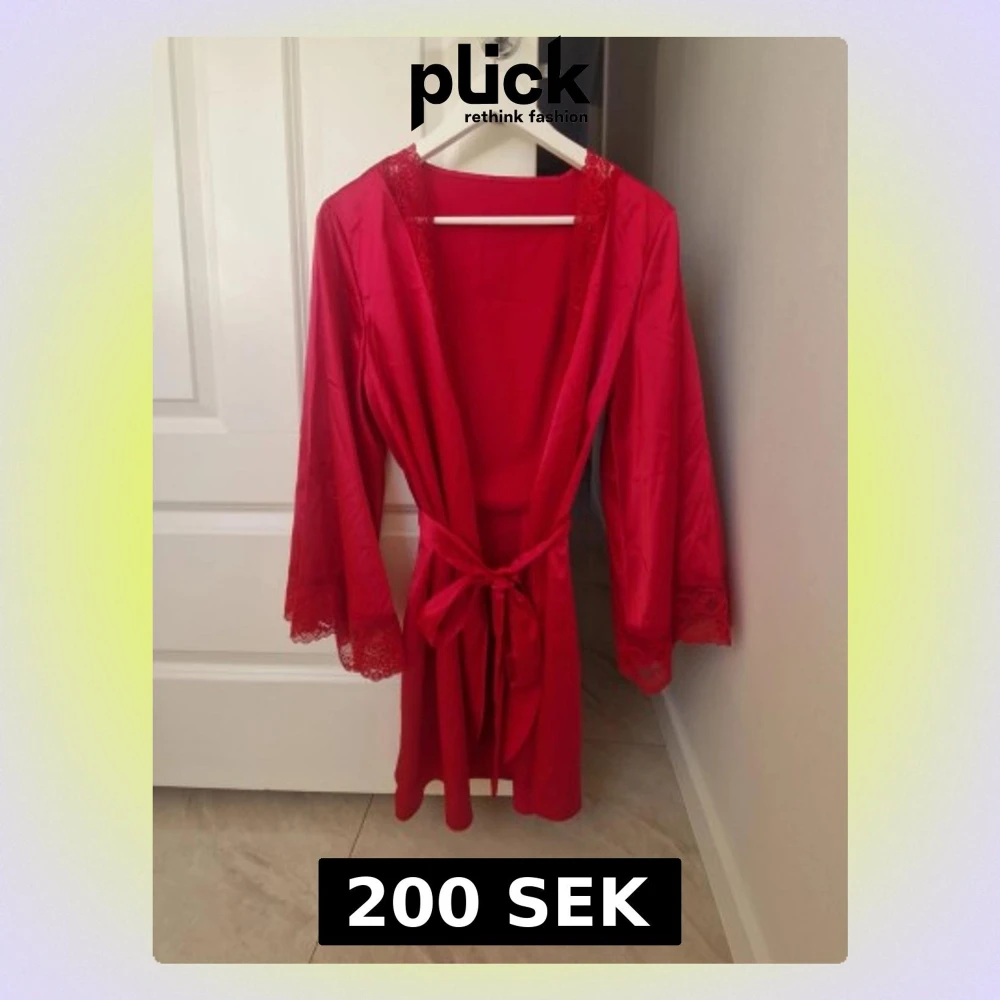 Röd morgonrock med spetsdetaljer