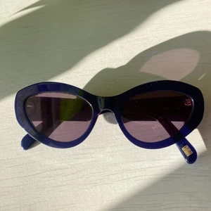 Ny skick, använda fåtal gånger! Mörk blåa solglasögon med guldig logga, från Elsa Hosk x CHIMI eywears kollektion. Modell ”just right”.