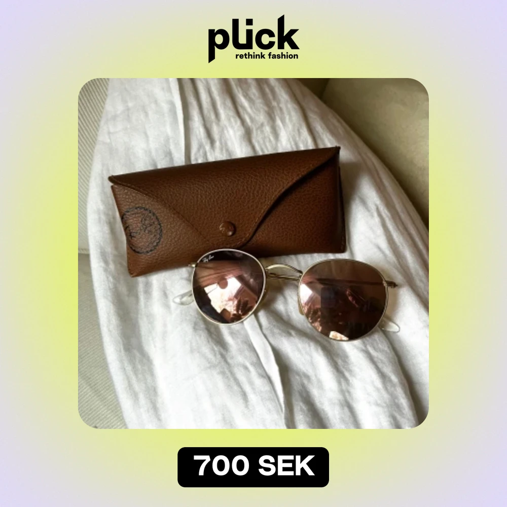 Runda solglasögon med rosa spegelglas. I väldigt fint skick, inga repor. Se sista bilden för att se färgen på glaset bättre.