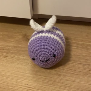 Handgjord virkad humla. Lila färg. Material; aktylgarn, polyester vadd, platsögon. Mått: ca 10,5 cm • 8,5 cm. Frakt inom Sverige ingår i priset. Betalas med Swish.
