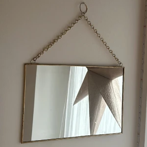 Vacker guld spegel med kedja. Mått på själva spegeln utan kedja: 30 cm bred och 19,5 cm hög ❤️ lite repor på och har lite rost på vissa ställen. ordinarie pris 300kr säljer för 100kr