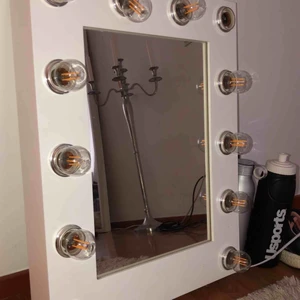 Sminkspegel köpt på sminkspegel.se för 2200kr. Två lampor är sönder men går lätt att köpa till. Använd i ca 1 års tid och är fint skick förutom de två lamporna som gått sönder, säljer endast för ett bra bud ❤️