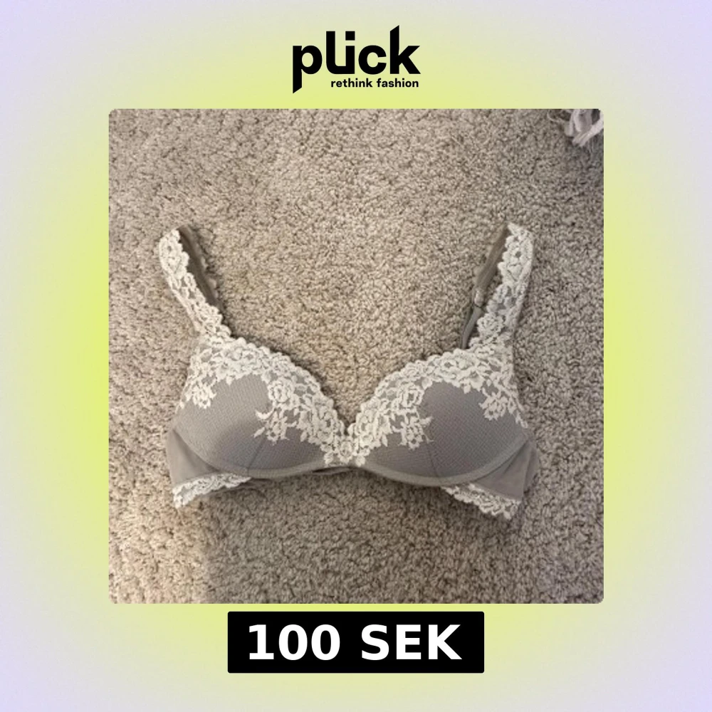 Superfin grå bh med vita spetsdetaljer längs kanterna och axelbanden. Bh:n har vadderade kupor och ett elegant mönster i tyget. pris kan diskuteras❤️