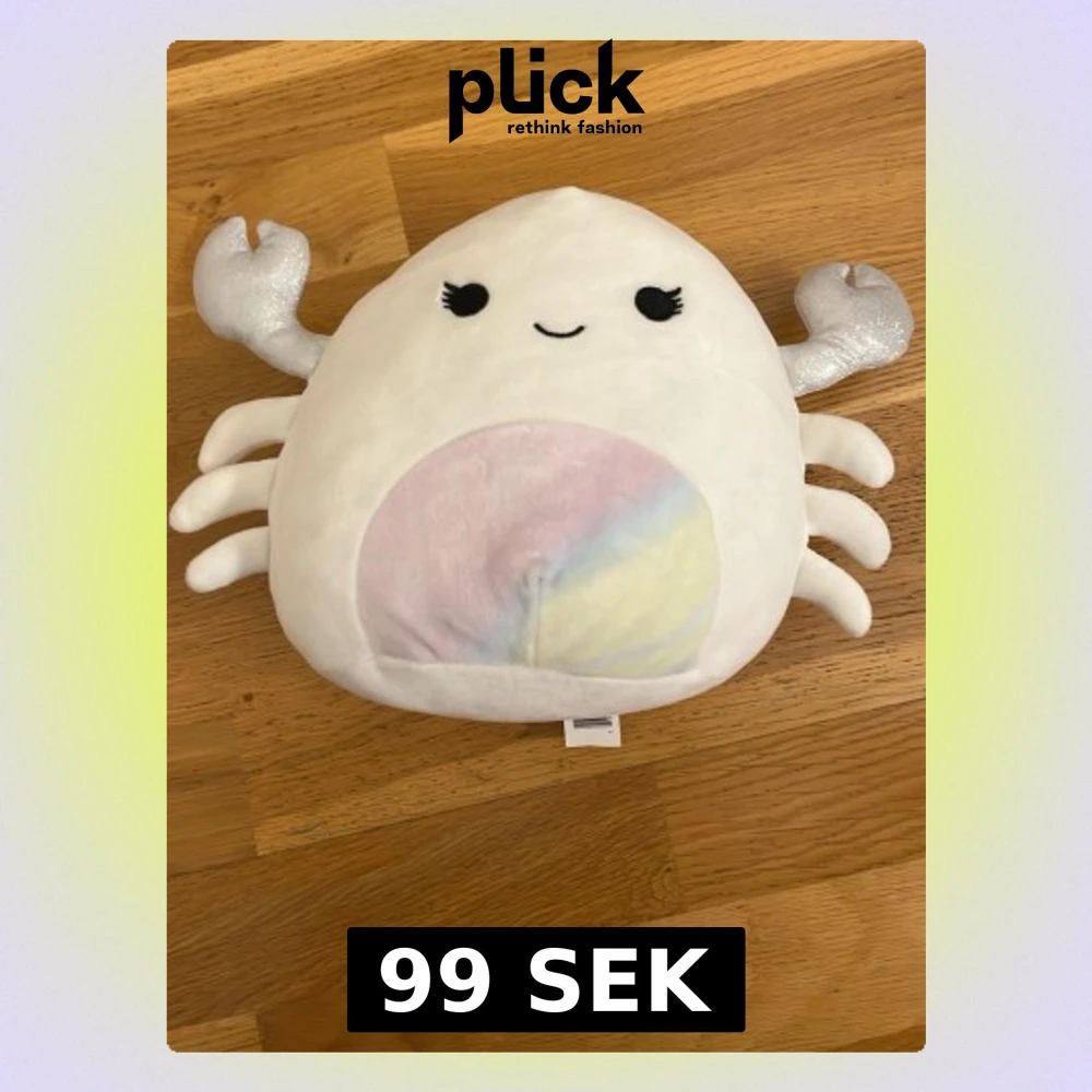Vit och regnbågen krabb-squushmallow. Priset går att sänkas.