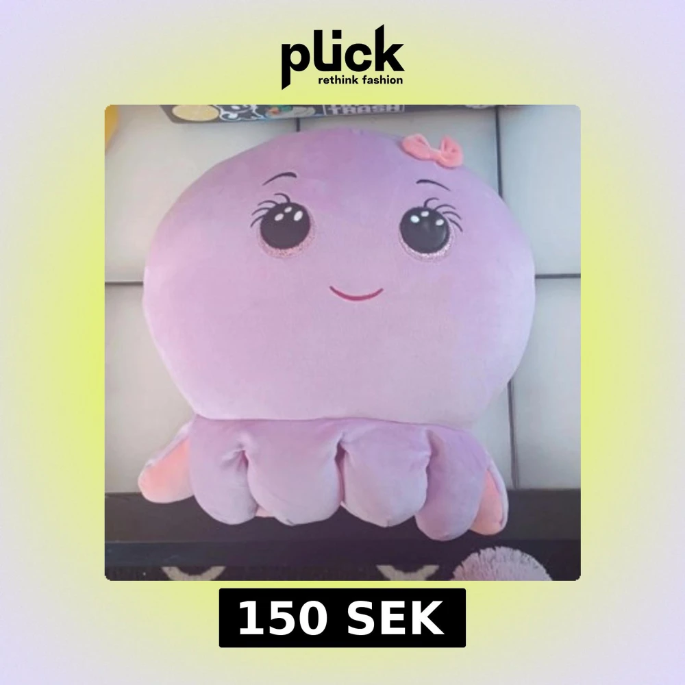 Fina Octavia squishmellow från Ty med stora glittriga ögon och en liten rosa rosett på huvudet. Kudden är mjuk och perfekt som dekoration eller kramkompis. Den har flera ben och ett glatt ansikte som gör den extra charmig. Hon är väldigt stor!