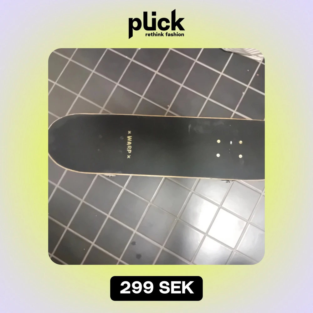 Säljer en cool skateboard från Warp med ett unikt mönster på undersidan.' och är utrustad med vita hjul och stabila truckar. Perfekt för både nybörjare och erfarna åkare som vill ha stil och funktion i ett. Bra skick, knappt använd