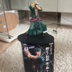 En anime figur (zoro) från one piece, ja har tappat intresse för anime så jag säljer mina figurer. Två av svärdens tag är sönder så jag är ok med ett reducerat pris. Köpt för 300kr i Spanien, kommer med lådan.