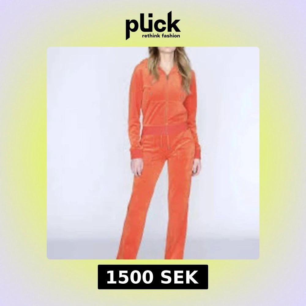 Säljer ett oranget Juicy Couture set i velour. Byxorna har fickor framtill och bak. Både koftan och byxorna är i storlek S💕