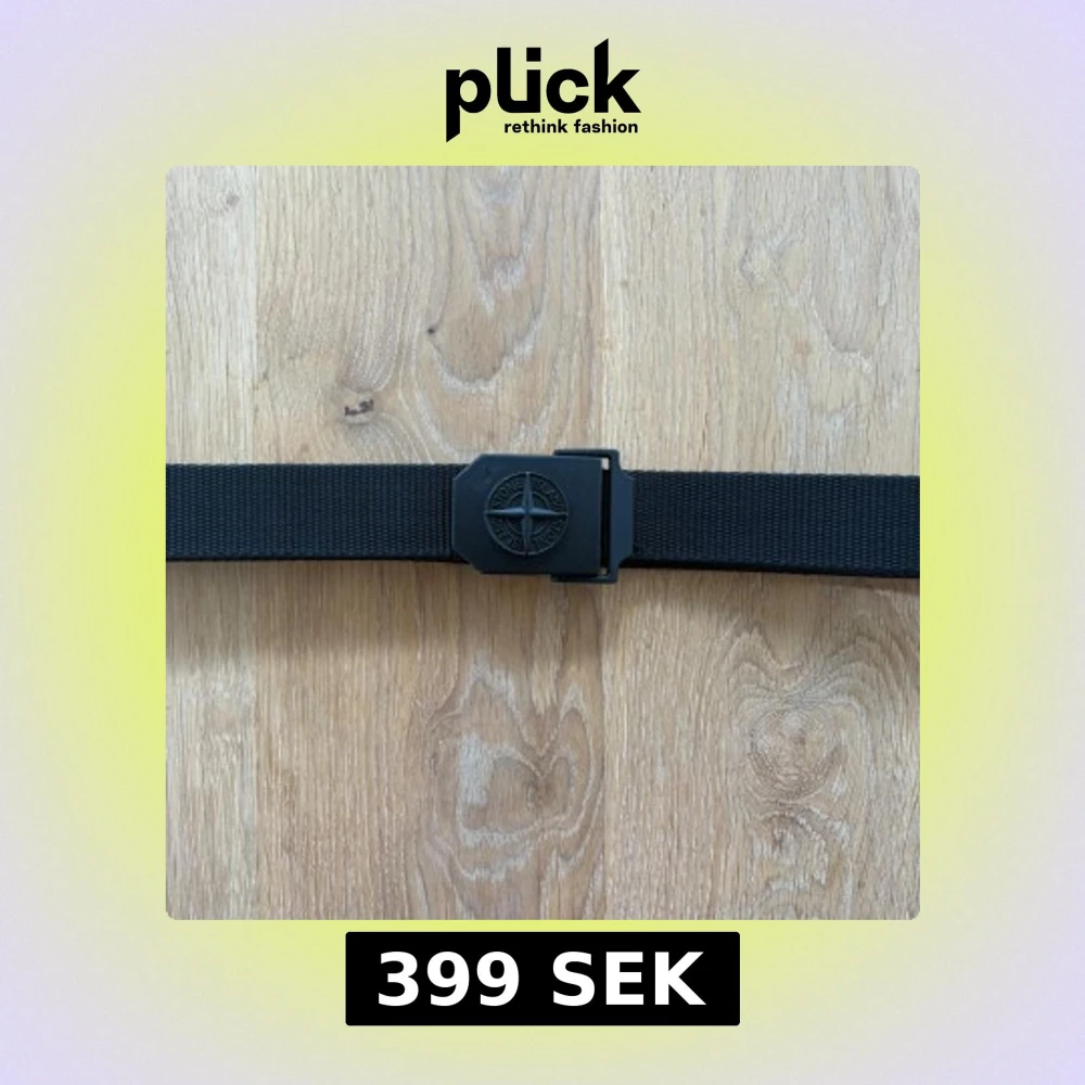 Säljer ett svart bälte från Stone Island med justerbart spänne och tydlig logotyp på spännet. Bältet är tillverkat i slitstarkt material och har märkets namn tryckt på insidan. Storlek 95 cm.