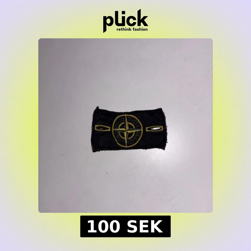 Säljer en klassisk svart patch från Stone Island med det ikoniska kompassloggan broderad i gult och grönt. Märket har två knapphål på sidorna och passar perfekt att fästa på jacka eller tröja för en streetwear-look.