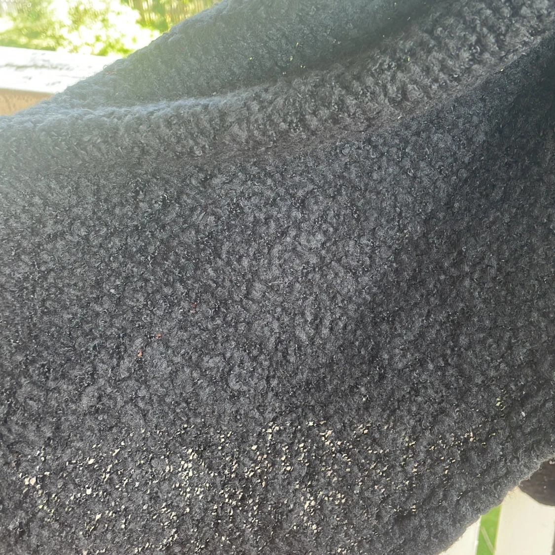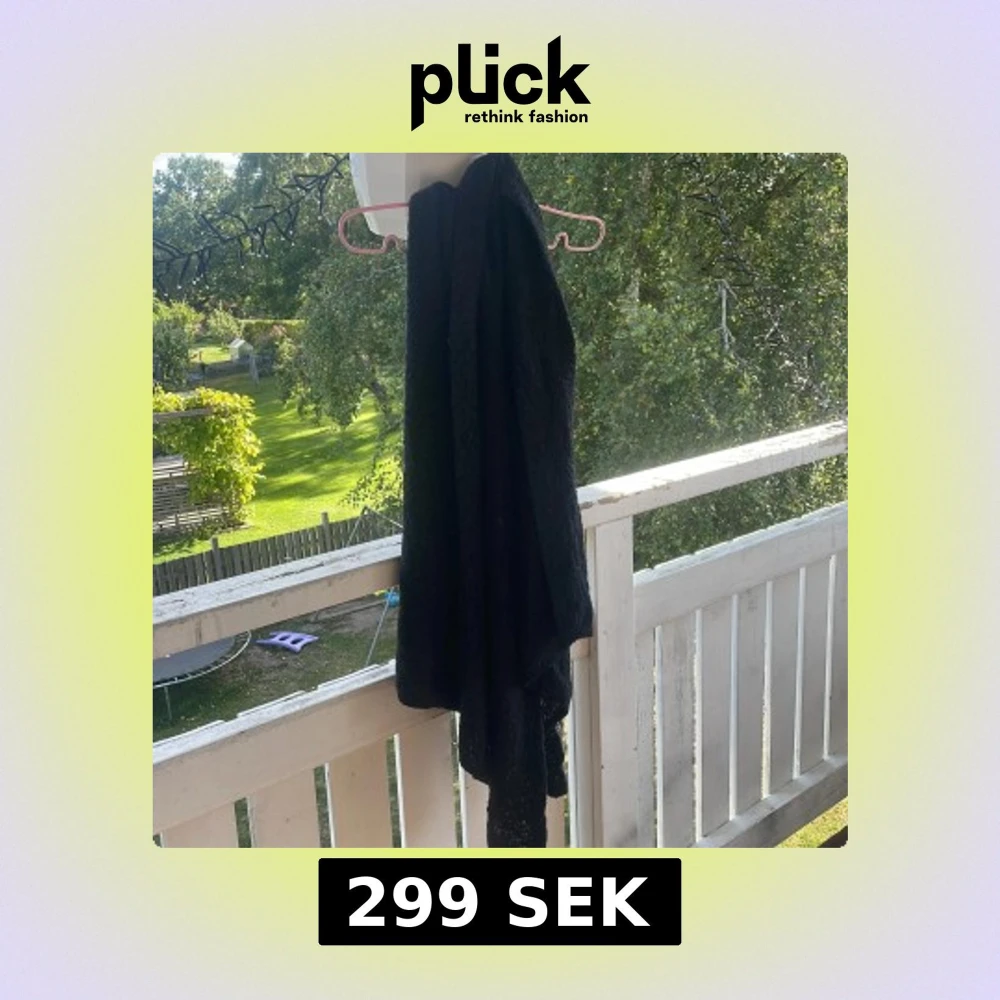 Mysig svart stickad halsduk med grov struktur och oversized passform. Perfekt att slänga på sig när det är kyligt ute.Har en enkel design utan knappar eller dragkedja och är riktigt skön att bära. Ull liknade material❤️