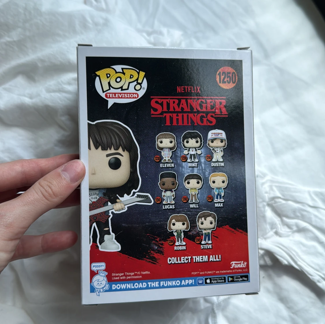 Samlarfigur från Funko Pop! föreställande Eddie från Stranger Things. Perfekt för fans av serien som vill ha en cool och unik dekoration till rummet eller samlingen. Special Edition-variant med detaljerad design och ikonisk gitarr. Pris kan diskuteras!