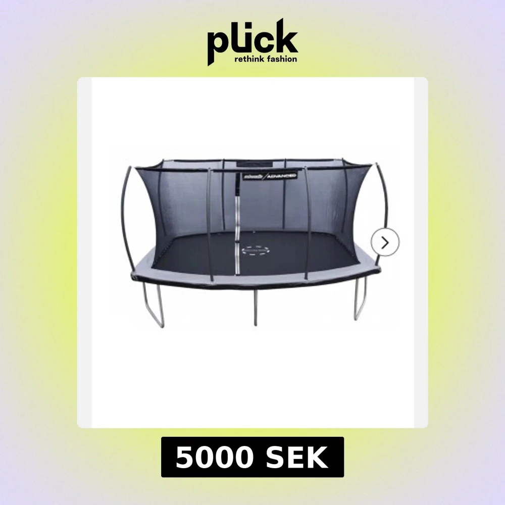 457x366 cm Jag har haft den i drygt 1 1/2 år men den är som ny! Inga defekter på varken nät eller matta. Den är stor och rymlig för volter eller många lekande barn! (Köpt för 7500kr) Allt ingår och den finns att hämta nermonterad.