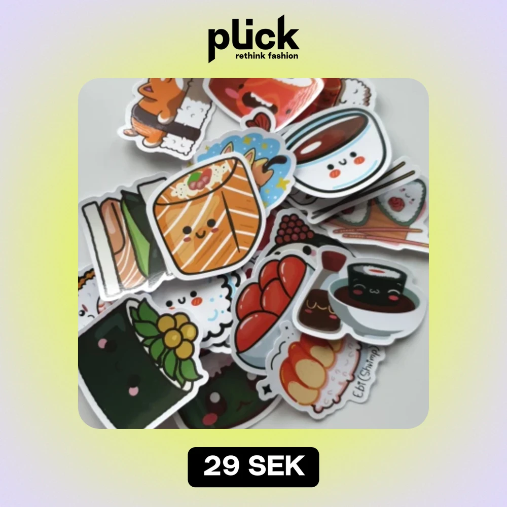 Klistermärken/stickers Motiv: sushi Antal: 24st Skick: ny/oanvänd Kul att använda till pyssel, scrapbooking och annat. Kan tex användas till att dekorera din bärbara dator, skateboard, resväska,