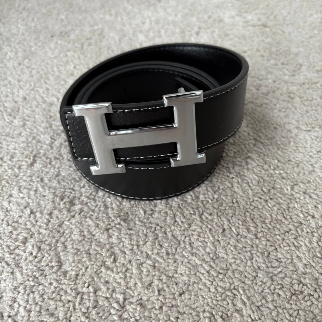 Svart He*mes bĂ€lte med silver loggađ„. 125 + förkortare följer med!