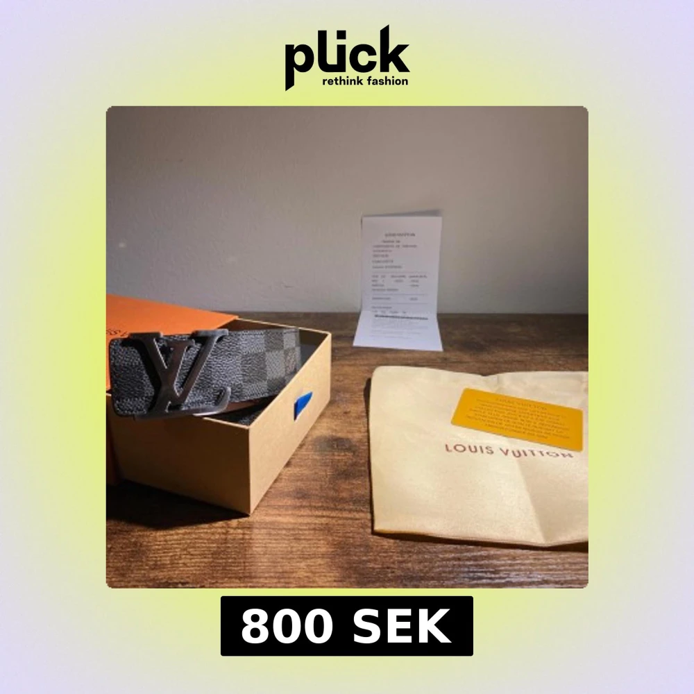 Fint svart rutigt bälte som har en silvrig logga. Man får box oxh kvitto, allt man behöver. Aldrig använd helt nytt