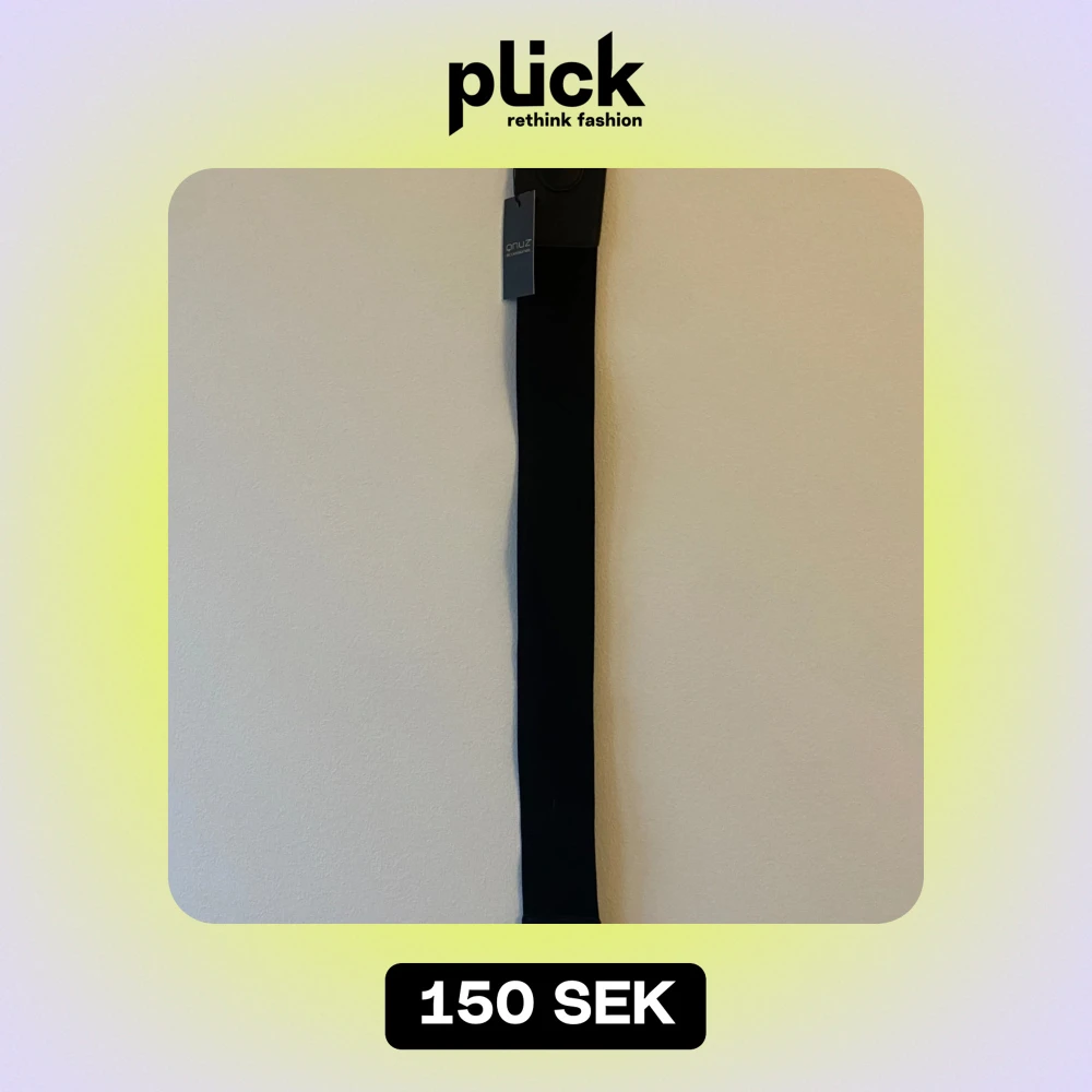 Snyggt svart bälte från Qnuz med en unik rund spänne-design. Perfekt för att ge din outfit en stilren touch. Bältet är i nytt skick.