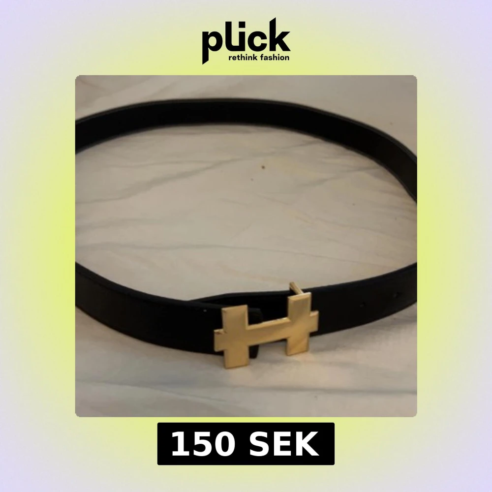 Elegant svart bälte med ett stilrent guldfärgat spänne i form av ett H. Perfekt för att ge en lyxig touch till din outfit.