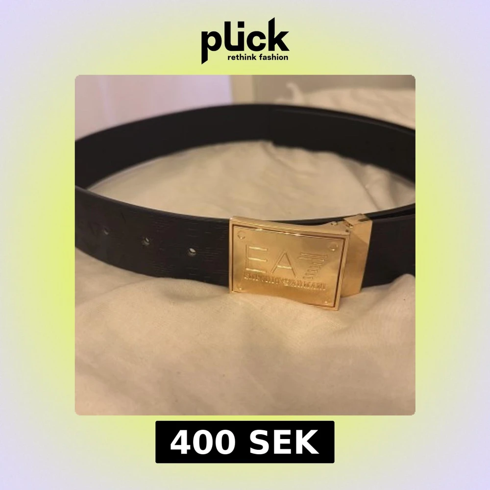 Snyggt svart bälte från EA7 Emporio Armani med ett stort, fyrkantigt guldfärgat spänne där loggan är ingraverad. Bältet har präglad EA7-text längs hela remmen och är gjort i skinn. Perfekt accessoar för att lyfta din outfit.
