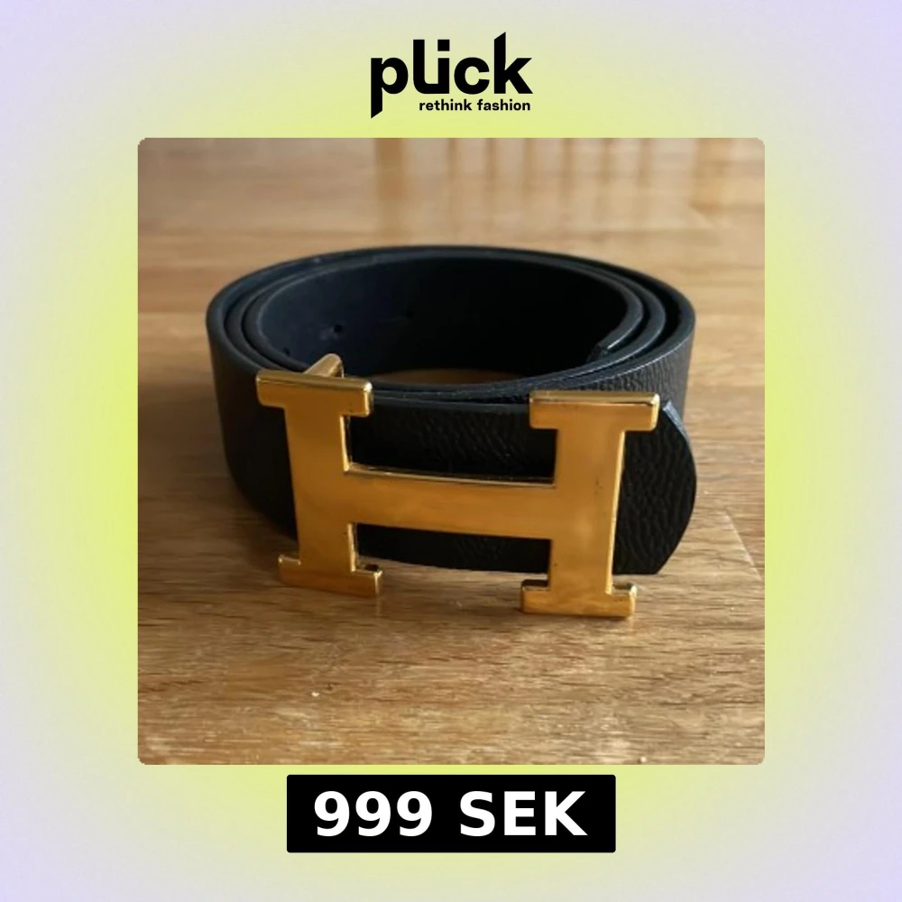 Snyggt svart bälte med ett stort guldfärgat H-spänne. Perfekt för att ge en stilren touch till din outfit. Bältet är tillverkat i skinn och har en klassisk design som passar till många olika stilar.