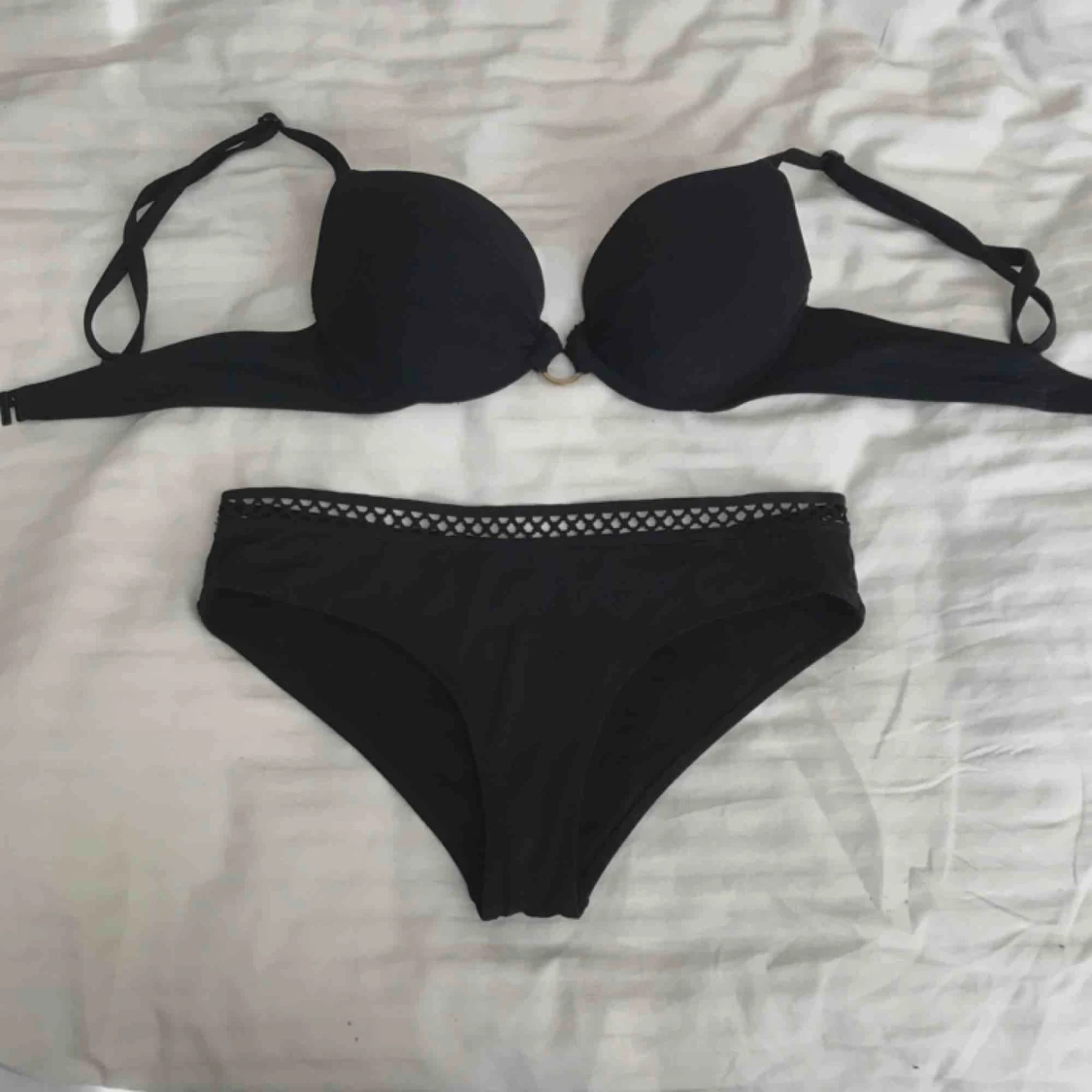 Ny bikini! Använd 2 gånger. Nypris: 399 kr. Underdel storlek xs, överdel storlek: 75 a