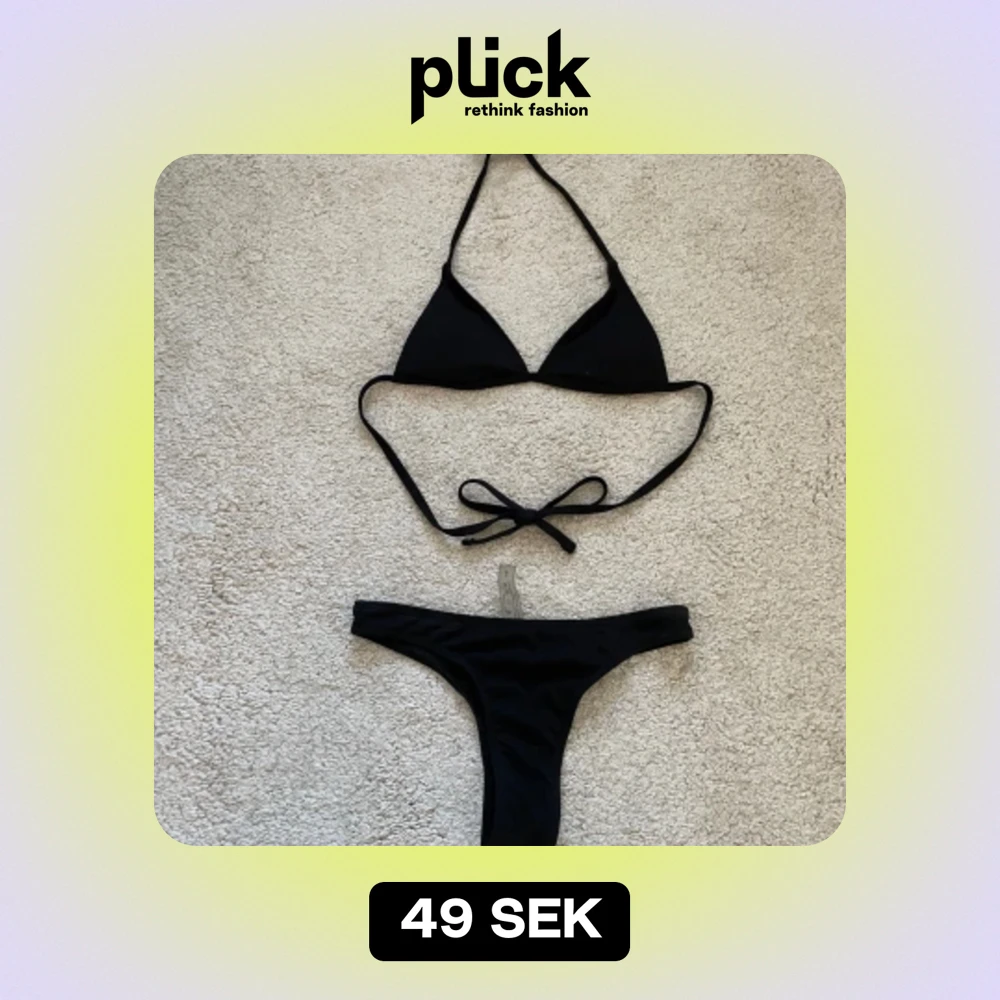 Enkel och classic fett snygg svart bikini 💄🖤köptes förra sommarn från shein tyvärr i en för liten storlek för mig därför säljer jag den nu!🥰