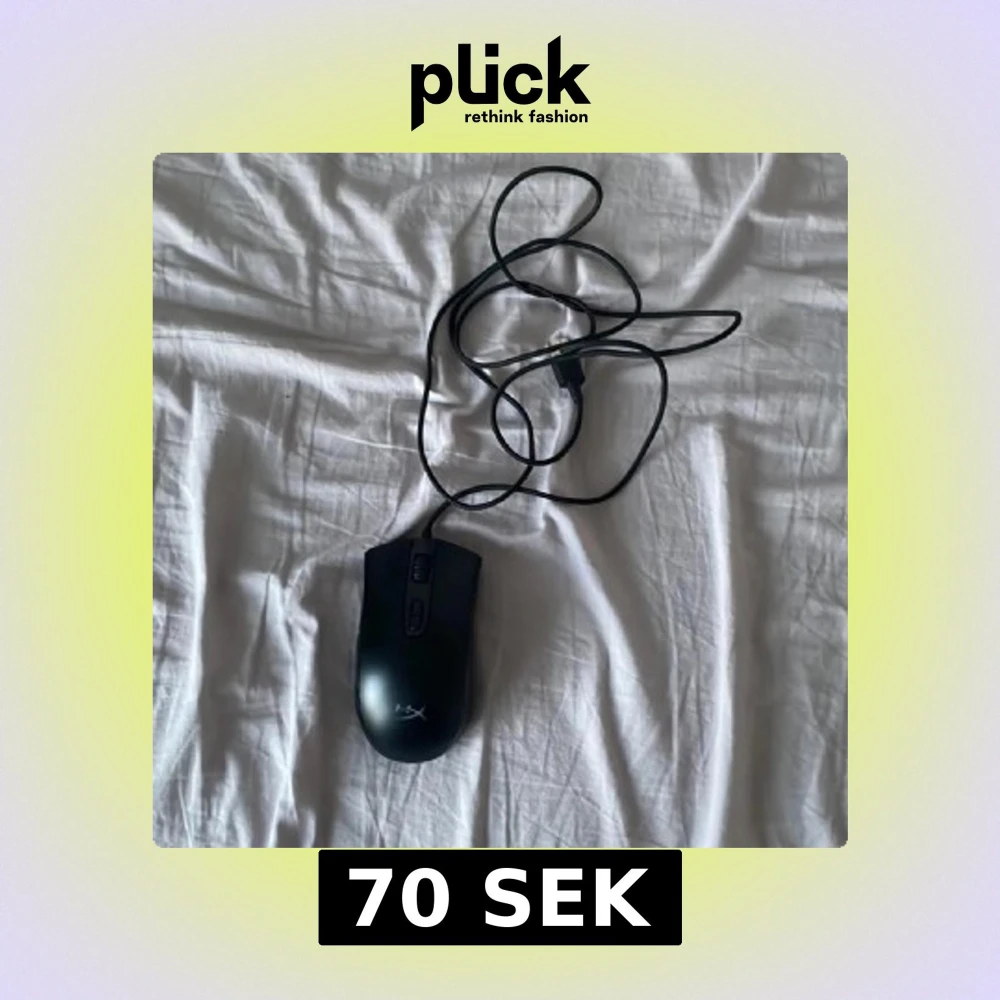 Säljer en svart trådbunden gamingmus från HyperX med två sidoknappar och scrollhjul. Musen har en ergonomisk form och USB-anslutning. Perfekt för gaming eller arbete vid datorn.