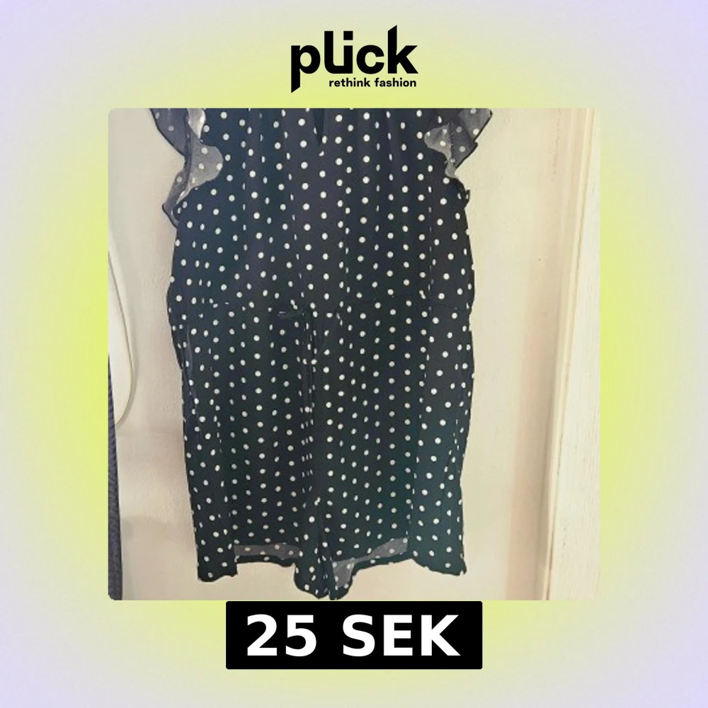 Svart byxdress från Shein Curve med vita prickar, volangdetaljer vid ärmhålen och dragkedja bak. Klänningen har en lös passform och är tillverkad i ett lätt polyestertyg, perfekt för dig som gillar en lekfull och trendig stil.