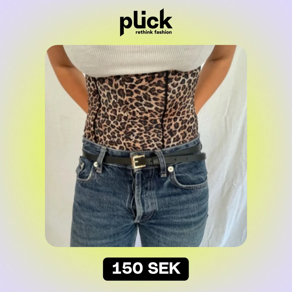 Svart smalt skärp med guldspänne. 90cm och justerbart