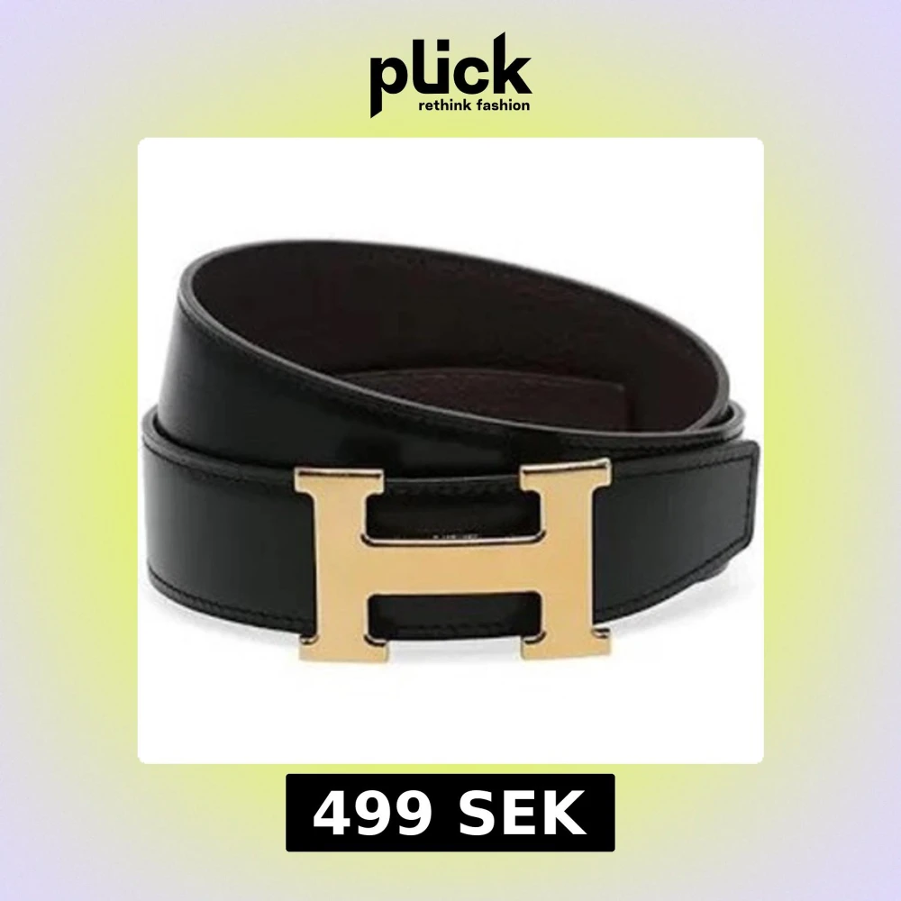 Snyggt svart skärp i skinn med ett iögonfallande guldfärgat H-spänne. Perfekt för att ge en stilren touch till din outfit.