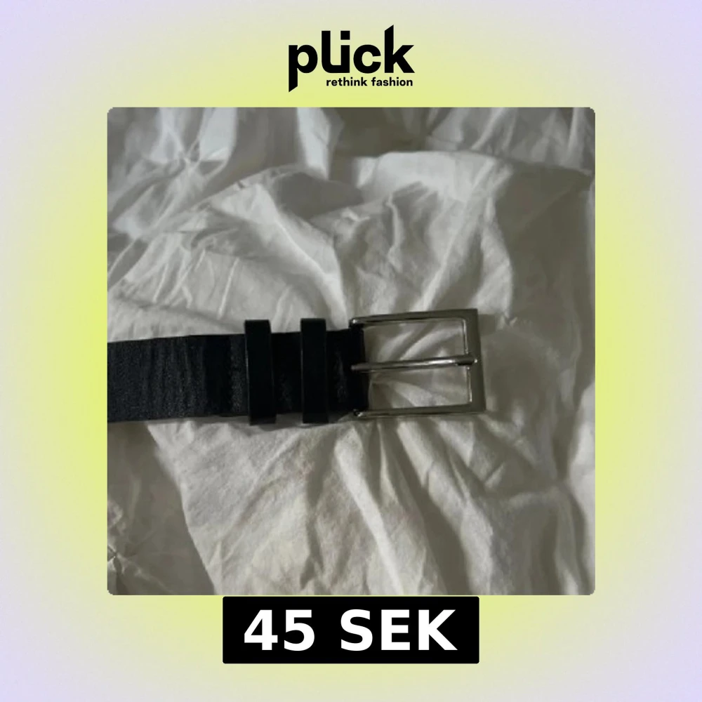 Stilrent svart bälte med klassiskt fyrkantigt spänne i silverfärg. Bältet har en enkel och rak design med två hållare nära spännet. Perfekt för att ge en clean look till jeans eller kostymbyxor.