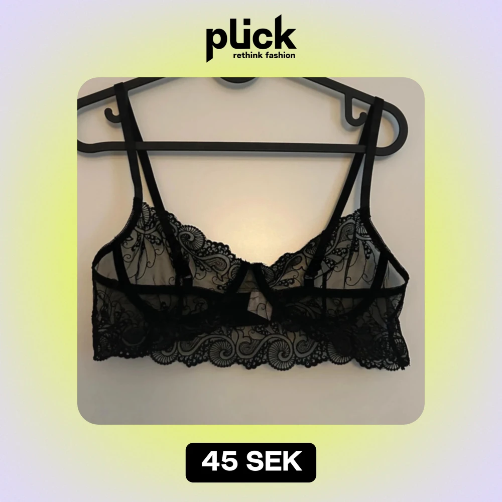 Säljer en superfin svart bh i spets. Den har ett detaljerat mönster med blommor och virvlar, vilket ger en elegant look. Axelbanden är justerbara och det finns en söt liten rosett framtill. Perfekt för att bära under en transparent topp eller bara som den är🥰