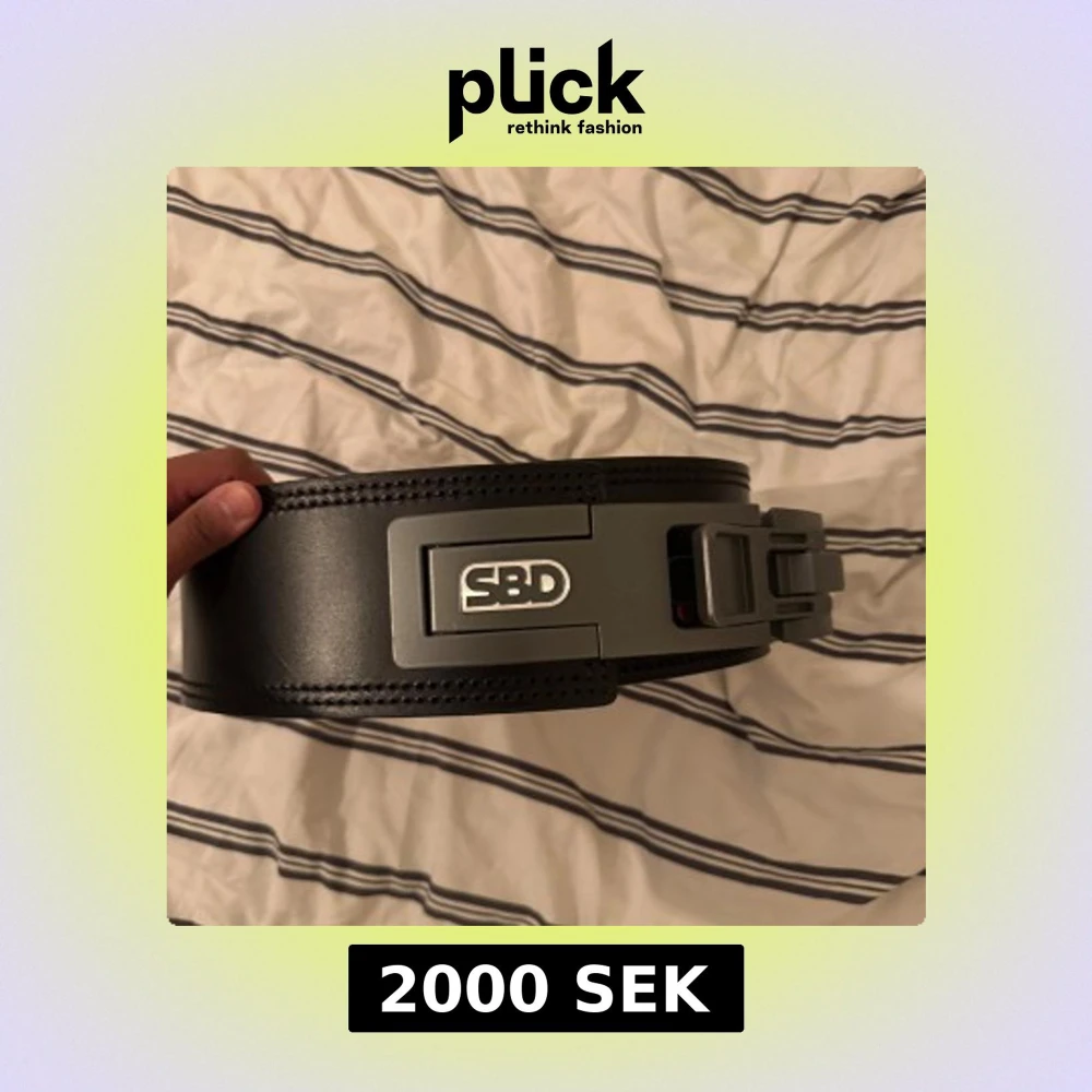 Säljer ett svart träningsbälte från SBD med röd insida och metallspänne. Bältet är brett och robust, perfekt för styrketräning och tyngdlyftning. Snygg SBD-logga på spännet och högkvalitativt material.