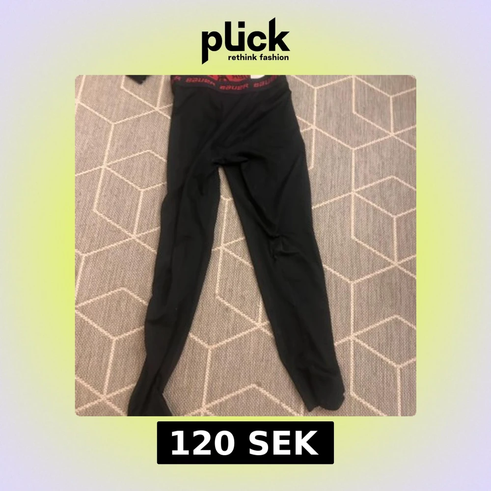 Svarta kompressionstights från Bauer med röd resår i midjan där det står 'Bauer'. Tightsen är tighta och gjorda i syntetmaterial, perfekta för träning eller sport. Snygg och sportig look med smal passform och stretchig känsla. Går att använda som målvakt jag gjorde det