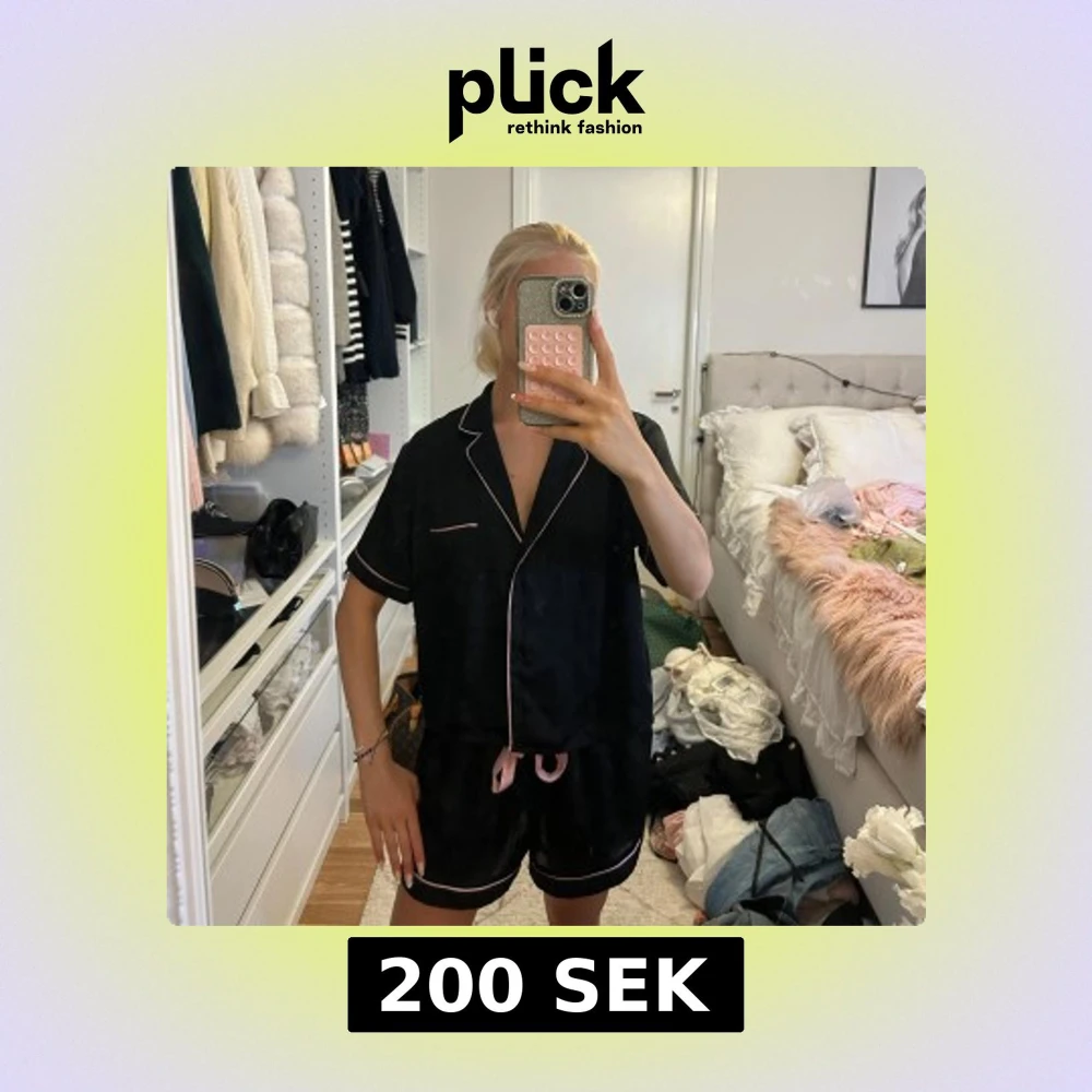 Svart pyjamasshortsset från Primark köpt i London med ljusrosa kantband och snörning i midjan. Mjukt och lätt material som känns skönt mot huden. Perfekt för chill dagar hemma eller mysiga kvällar. Klassisk loose fit och snygg kontrast med de rosa detaljerna.