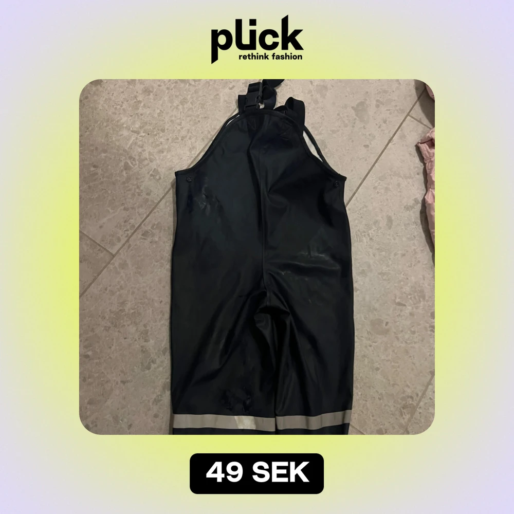 Säljer ett par svarta regnbyxor från Abeko i bra skick. De har justerbara hängslen och reflexband vid bensluten för extra synlighet. Perfekta för regniga dagar och utomhuslek. Passar barnstorlek 98/104