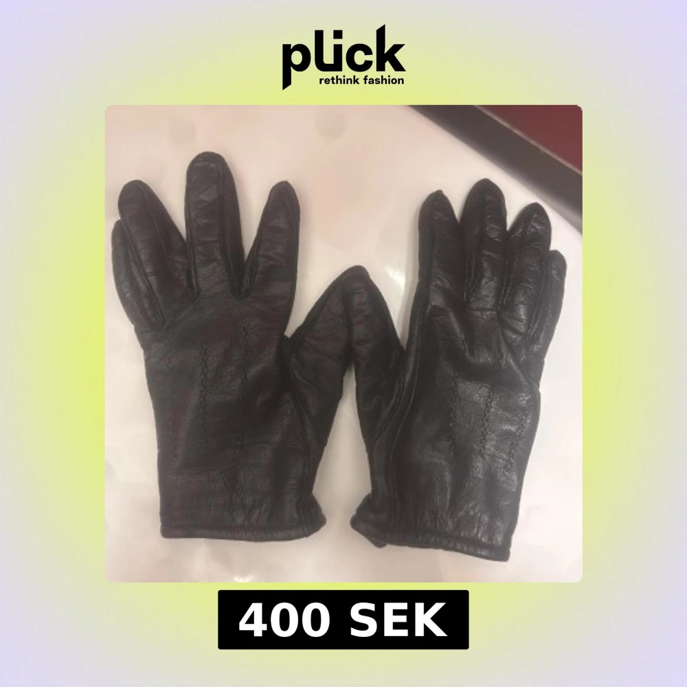 Säljer ett par klassiska svarta handskar i äkta skinn med mjukt, ljust ullfoder på insidan. Handskarna har enkel design med diskreta sömmar och elastisk mudd vid handleden för bättre passform. Perfekta för kalla dagar när du vill hålla händerna varma och stilrena.
