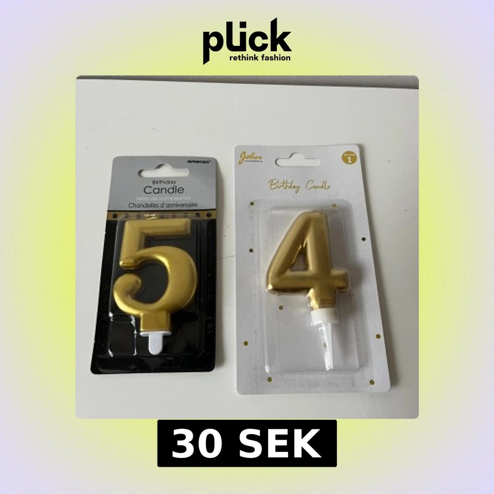 Två guldfärgade födelsedagsljus i form av siffrorna 4 och 5, perfekta för tårtan. Båda är nya och ligger i orginalförpackning.