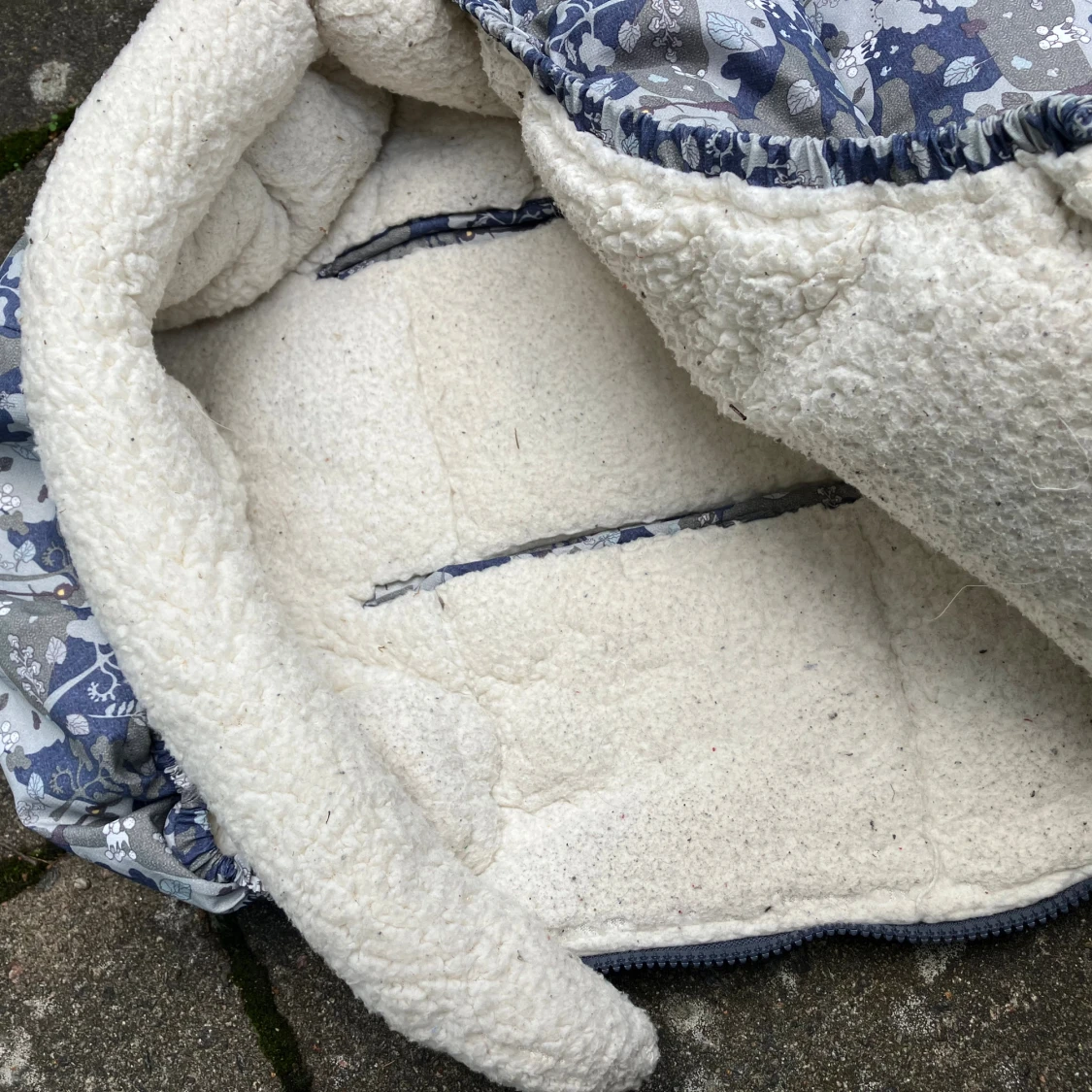 Supermysig åkpåse från Elodie med fint mönster och fluffigt foder inuti. Använts under vinterhalvåret i liggvagn, funkat jättebra. Varm och gosig!