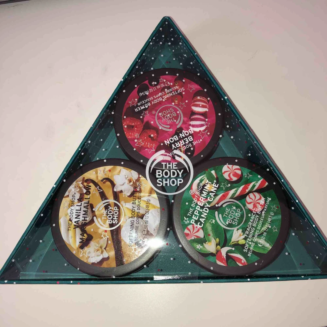 Ett 3-pack body butter från The Body Shop. Den gröna har använts en gång! Frakten står inte i priset