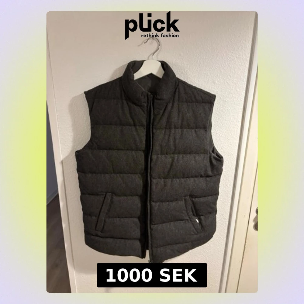 Säljer en grå vändbar dunväst från These Glory Days i storlek L. Ena sidan är quiltad med mjuk yta och den andra är slät. Västen har hög krage, dragkedja och fickor på båda sidor. Perfekt för lager på lager och enkel att matcha. Nypris 2000kr.