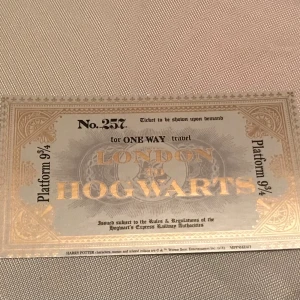 En Hogwarts Express biljett med guld dekorationer. Tjockt papper, väldigt bra kvalitet. Köparen står för frakten💕