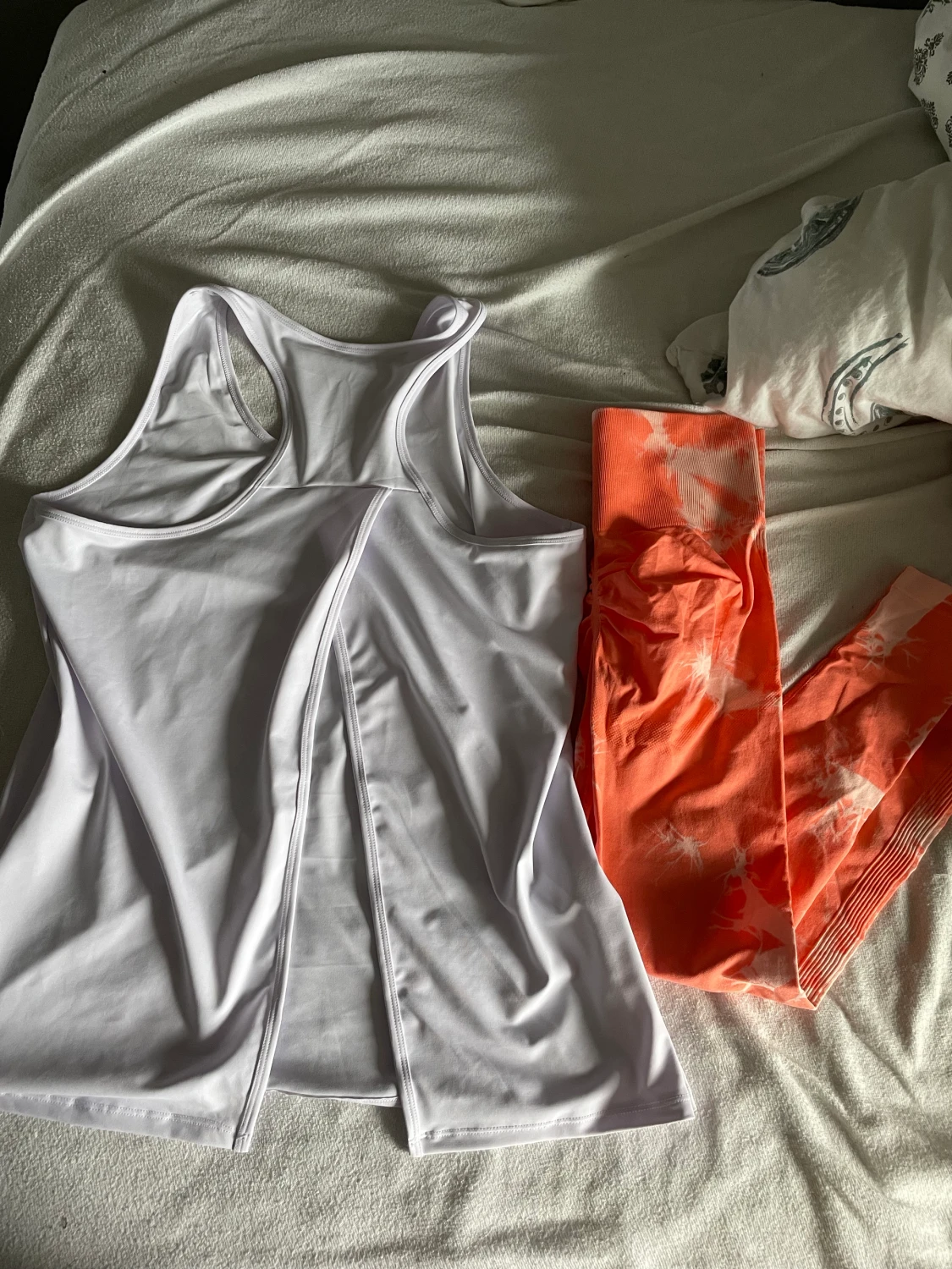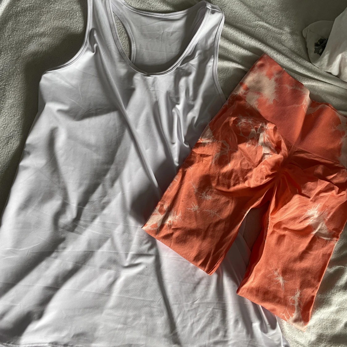 Helt nytt träningsset från Shein storlek M. Tröjan har en mycket fin utskärning på baksidan. Byxorna har en snygg scrunch och är i en snygg corall färg. Ingen deffekt alls, har för mycket träningskkäder så hinner inte använda🥰skriv till mig vid fundering